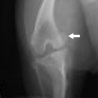 膝蓋骨内方脱臼のレントゲン(右後肢) |