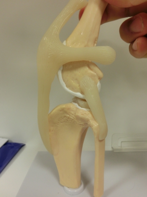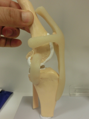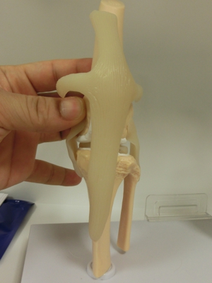 靭帯をめくって膝蓋骨と滑車溝を露出させたところ |