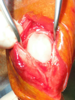 滑車溝の軟骨を剥がして |