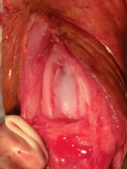 靭帯をめくって膝蓋骨と |