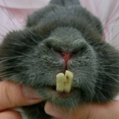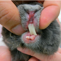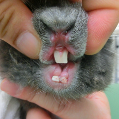 - 切歯の不正咬合により、歯が異なる方向に伸び過ぎると定期的に病院で切る処置が必要です。