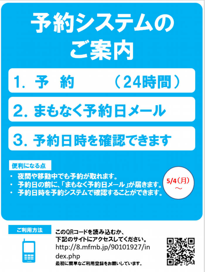 新型コロナウイルス拡大防止の為、時間帯予約制をスタートします